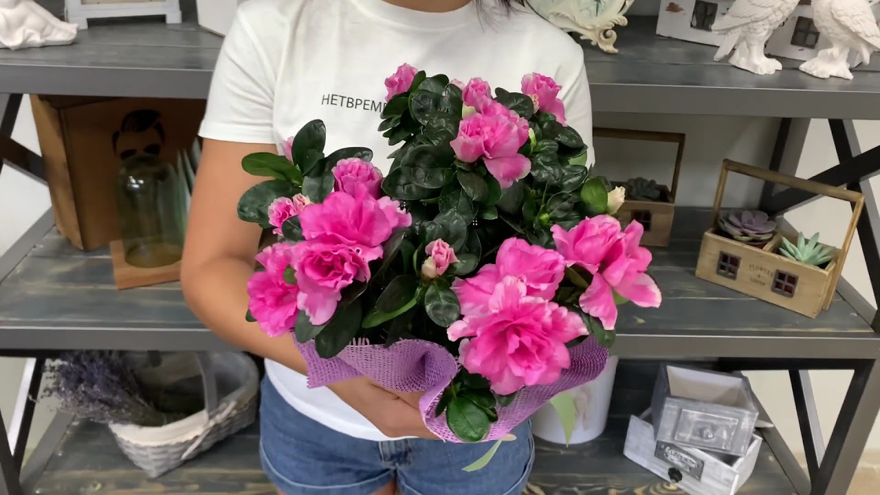 Азалия розовая в горшке с грунтом. Оттенки розового могут меняться в зависимости от наличия.