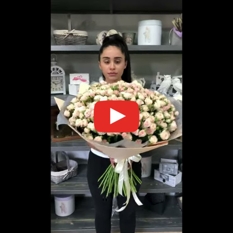 Шикарный большой букет из 51 кустовой кремовой розы сорта "Яна"