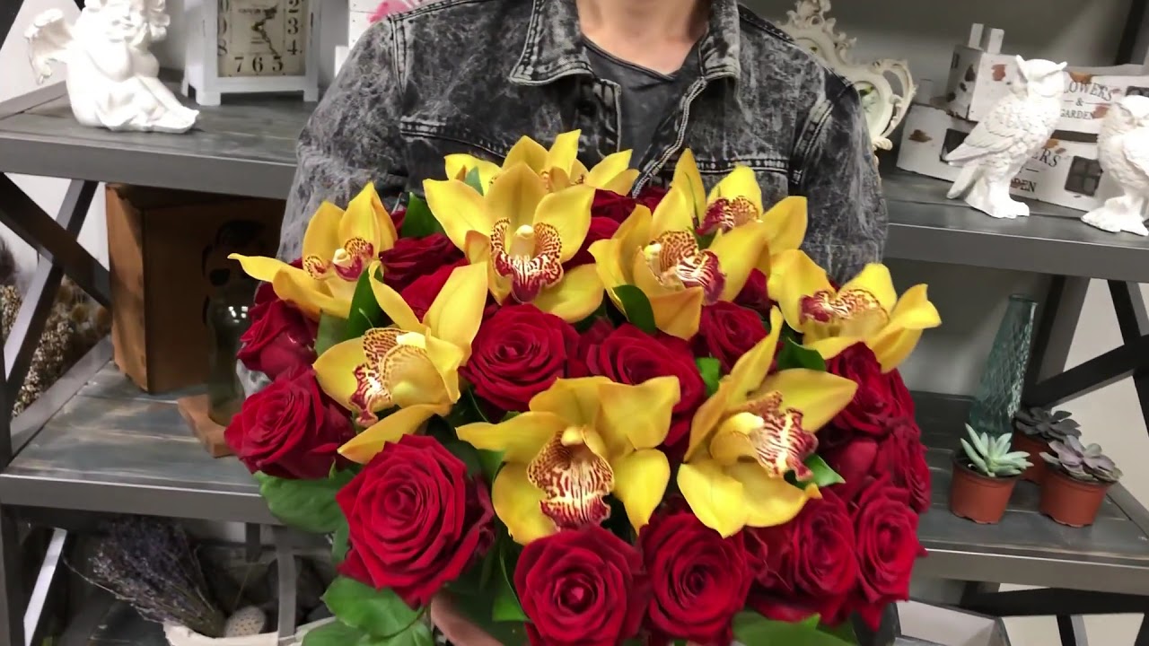 Букет "Желтые орхидеи и красные розы"