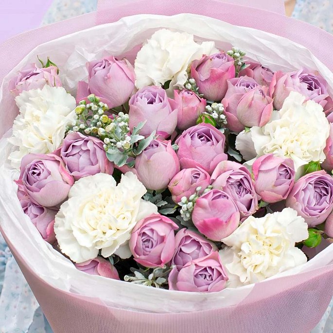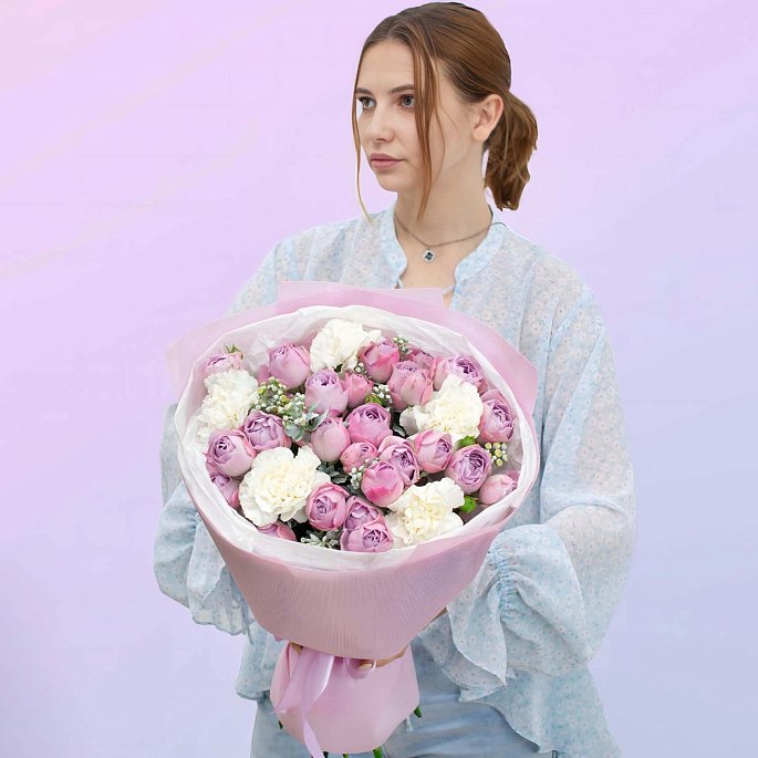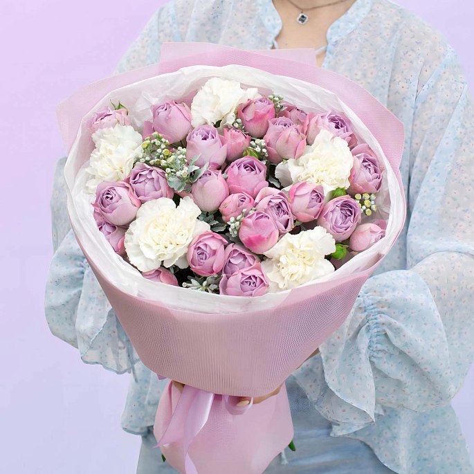 Воздушный и мягкий по настроению букет в лавандово-розовой палитре.