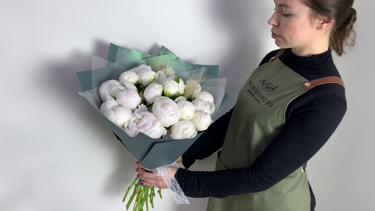 Букет из 19 крупных итальянских белых пионов "Duchesse De Nemours"