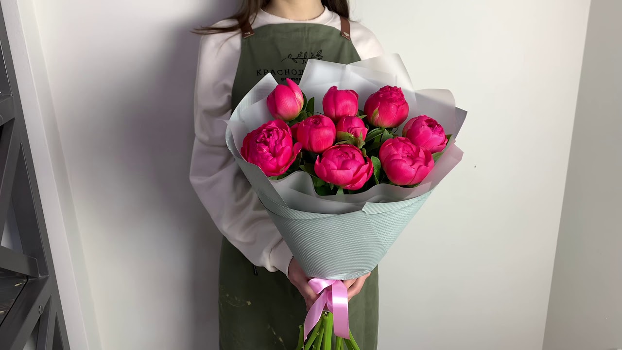 Ура, наконец-то в наличии суперкрупные импортные пионы!Букет из 9 крупных итальянских коралловых пионов "Coral Sunset"