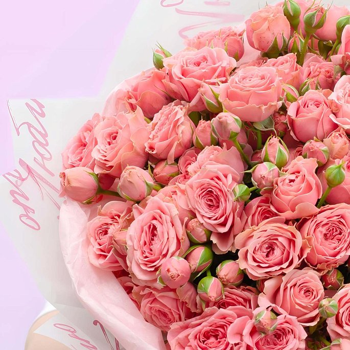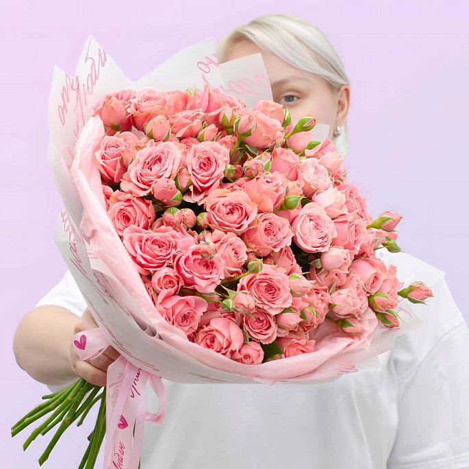 Идеальная «валентинка» размера. Облако из 19 веток пионовидной кустовой розы. Этот букет заявляет о чувствах лучше любых слов.