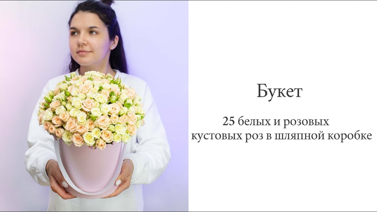 25 белых и кремовых кустовых роз в шляпной коробке