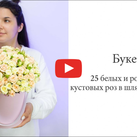 Средний цилиндр (диаметр 20 см) с 25 кустовыми розами, белые и розовые.